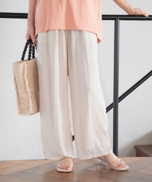 さらりと着心地の良いおすすめイージーパンツです。 さりげない柄が大人かわいいポイント♪ 広がりすぎないラインが美脚効果◎ 裏地もついているので下着が透ける心配もいりません! ウエストフリルと紐がアクセントになるので トップスはインでもアウトでも映える一着となっております。 【INFORMATION】 ■商品のお気に入り登録 完売していても再入荷時に再入荷通知を受け取ることができますので、是非ご登録ください! ■ブランドのお気に入り登録 新商品や再入荷などの情報を受け取ることができますので、是非ご登録ください! ※撮影環境により、光の当たり具合で色味が違って見える場合があります。あらかじめご了承ください。
