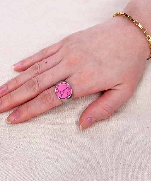 今季のトレンドを小物から取り入れるだけで、こなれ感を演出できる。コーディネートに添える最旬リング。トレンドの印台デザインリングは、指本にインパクトを与え、単体づけでも他のリングと組み併せてもこなれ感が生まれる便利なアイテムです。ベース素材のステンレス316Lは通称サージカルステンレスと呼ばれ、医療用のメスやハサミなどにも使われています。特徴として、錆びにくく・傷につよく・金属アレルギーが発生しづらく、デイリーなアクセサリーに最適です。シンプルながらも細かいディテールにこだわったデザインは日々の中でも実用性を発揮。サイズ展開も4サイズあるので、つけたい指によってサイズをお選び頂けます。ネックレスやブレスレットに続き、彩るアクセサリーとしても活躍。男女兼用・ユニセックスなデザインでちょっとしたプレゼントなどにもオススメのアイテムです。デザインポイントの印台センターには天然石を配置で本格的な作りとなっています。※天然石の為、色柄に個体差が若干御座います。ブルー → ターコイズブラウン → タイガーアイピンク → ピンクターコイズブラック → ブラックハウライト(白とのグラデーション)※シルバーはステンレス316Lのまま/ゴールドはゴールド1Pメッキ