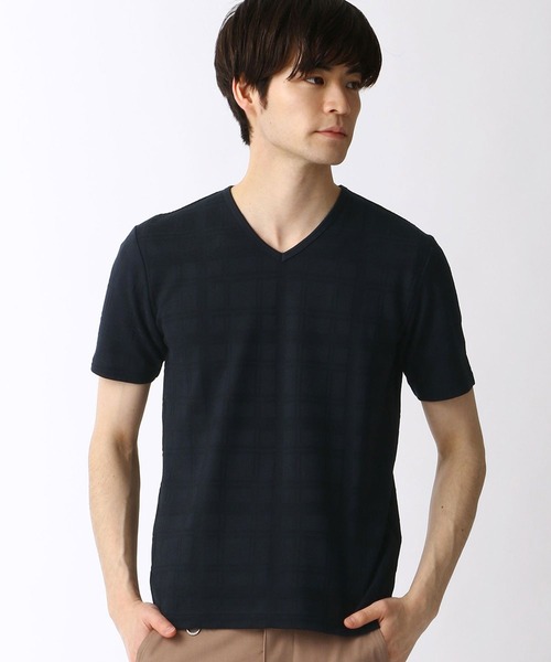 リンクス編みで大きめのチェック柄を表現した生地を使用しています。綺麗な艶感と上質な張り感のある生地となっています。また、生地にシルケット加工を施すことで斜行による柄の歪みやピリング発生のリスクを極力抑えています。伸縮性があり、ドライタッチな風合いで快適な着心地のカットソーです。※画像の商品はサンプルです。実際の商品とは仕様・加工・サイズ・素材が若干異なる場合がございます。
