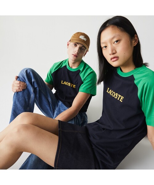 クラシックスポーツカジュアルスタイルを象徴する、袖色配色のラグランスリーブTシャツ。そのベーシックスタイルを踏襲しつつ、胸にはシンプルなネームプリントを配置。ノスタルジックな雰囲気をまといつつも、絶妙のカラーバランスで今っぽく仕上げた、LACOSTE L!VEらしい1枚です。
