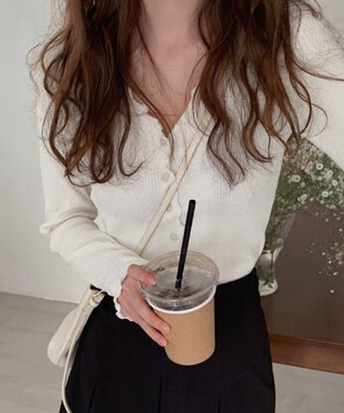 メロウ加工がさりげなくフェミニンなリブカーディガンが登場!■デザインカーディガンとして単品、またレイヤードなど様々なシーンで活用しやすく、デイリーに着やすいアイテム◎Vネックで顔回りをスッキリと見せてくれます。スカートやスラックスとすっきりとマッチさせたり、デニムパンツと一緒にカジュアルに!また、伸縮性の良い生地で、触り心地がとても柔らかいので着回しに使えるアイテムです。■素材柔らかく優しい肌ざわり。春から秋まで長く着用していただけます。畳んでカバンにも入れられる厚みです。■スタイリングトップスとして合わせるのはもちろん、前を開けて羽織りとしても◎ボトムスを選ばないデザインで、幅広いコーディネートが楽しめます。デニムにインしてもスカートを合わせても可愛いです。今季イチオシのカーディガンです。