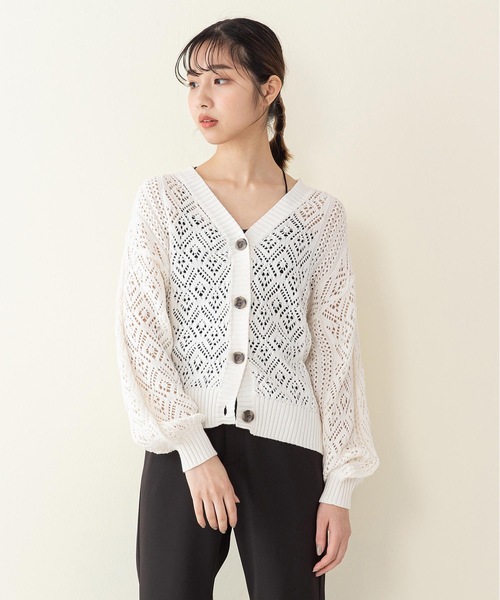 ◆かぎ針編みVネックカーディガン 【特徴】 ・かぎ針編みなので柔らかい感触とエアリーな風合いが春っぽいニット素材です。 ・ボリュームスリーブとドロップショルダーのゆるっとした女性らしいシルエットで、どんなボトムにもマッチするアイテムです。 【コーディネート】 ・スカートと合わせてAラインのスタイリングやスリムパンツと合わせたすっきりしたスタイリングなど幅広いコーディネートが可能です。 ・すっきりコーデならスキニーパンツ、スラックスパンツ、リブパンツ、レギンス、スパッツがオススメです。 ・ゆったりコーデならワイドパンツ、ジョガーパンツ、スカート、デニムがオススメです。 ・パンツの丈をくるぶし丈にするとコーディネートのポイントになります。 ・ニット帽、ビーニー、キャップ、バケットハット、ベレー帽などのセットアップもオススメです。 【innocent blue:イノセントブルー】 純粋さを合わせた素敵な大人の女性たちに、ベーシックながら今の気分を取り入れた。デイリーカジュアルを提案する、ウェアと服飾雑貨のレディースブランドです。 ■商品をお気に入り登録する■ お気に入り登録しておくと、完売商品の再入荷通知を受け取れます。 さらに、ラスト1点・セール時にも通知が来ます。 ■ブランドをお気に入り登録する■ 新入荷・再入荷などのブランド情報をいち早く受け取れます。