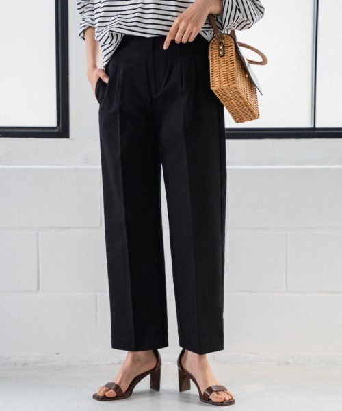 頼れる一本 きれい見え素材を使ったチノパン。 カジュアルと女性らしさの加減がちょうどいい一本です。 フロントタックで丸みをだしつつも、ボリュームが出ないようにデザインしています。 すっきり見えるセミワイドのフォルムは、センタープレスの効果大! 華奢なストラップやヒールのあるサンダルを取り入れると、大人の女性らしくまとまりお勧めです。 【素材】 チノ素材 カジュアル過ぎない目面のきれいなチノ素材を使用。 ストレッチなし 裏地なし 【お手入れ方法】 手洗い可 / ドライクリーニング可 ※洗濯ネット使用、移染注意 ※屋内外の光や照明の当たり具合で、実際の商品の色味とカラー別画像の色味に違いが発生する場合がございます。色味はスタジオ撮影の詳細画像にてご確認ください。 ※生地の寄り画像が最も実物に近い色味となります。 ーーーーーーーーーーーーーーーーーーーーーーー ▼ 商品のお気に入り登録 ▼ 完売カラーの再入荷通知や、ラスト1点の通知、 クーポン開始、セールの通知も受け取ることができます。 ▼ ブランドのお気に入り登録 ▼ 新商品や再入荷など、 ブランドのお得な情報をいち早くお知らせ! ぜひご登録ください!