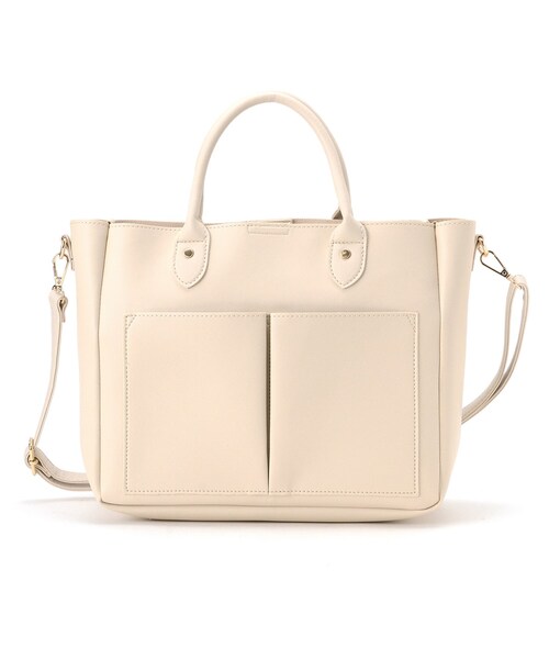 【デザイン】 使用頻度の高いアイテムの収納に便利なフロントオープンポケットデザインのトートバッグ。 A4サイズがすっぽりと収まるサイズ感とカチッとしたフォルムで、普段使いはもちろんのことオフィスシーンにもマッチします。 ロングストラップ付で、ショルダーバッグとしてもお使い頂ける2WAY仕様。 ※ポケット数:外側×2 内側×1 店舗へのお問い合わせ商品番号:F97-02047 ●製品寸法: 00:高さ25cm 幅(上部)36cm 幅(下部)29.5cm マチ11cm 持ち手上がり11cm 付属ショルダー対応サイズ70~132cm 備考:重量:約460g