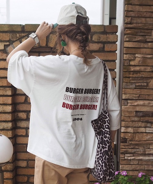 HWG_5 / エイチダブルゴー 大人気のBURGER Tシャツがシルエット新たに再登場!! インフルエンサーNATSUPOO x Non HWG_5オリジナル!こだわり抜いたオリジナルプリントTシャツ ・インフルエンサーNATSUPOO x Non 2人のこだわりが詰まったプリントTシャツです! [デザイン] ・首周りがきれいに見えるクルーネックに、ドロップショルダーで袖は長めの仕上がりに。 ・身幅はたっぷりゆったりとしたシルエットですが着丈が短めなのでバランス良く着用頂けます。 [スタイリングポイント] ・デニムでカジュアルスタイルはもちろん、セミワイドのきれいめパンツやボリュームのあるスカートなどと合わせても可愛いので様々な組み合わせでお楽しみ頂けます。 品番 :HGTSH211013 【より楽しくお買い物をしていただくために♪】 ◎商品のお気に入り登録 ー気になるアイテムは[お気に入り登録]がオススメ☆ ーご登録いただくと完売カラーの再入荷通知やラスト1点、セールの通知などが受け取れます ◎ブランドのお気に入り登録 ー新商品や再入荷などブランドのお得な情報をいち早くお届けします♪