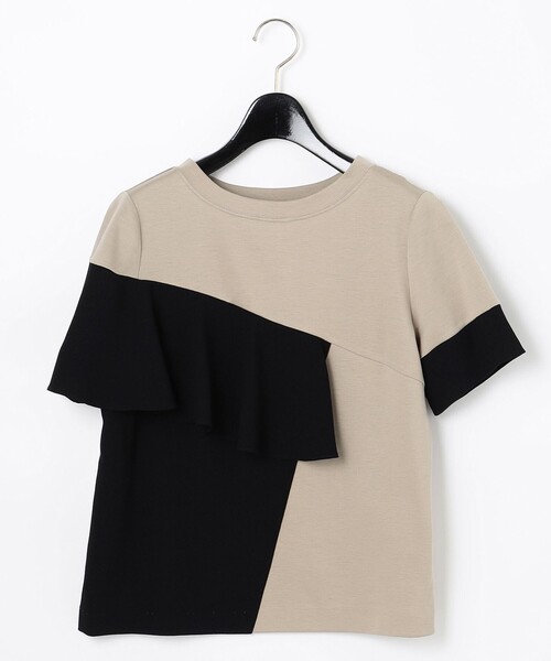 コーディネートのポイントにもなる配色カラーとフリルが印象的なトップス。 ジャージ素材とジョーゼット素材を組み合わせた、異素材使いも楽しい一枚です。 アシンメトリーなデザインもモードな雰囲気を感じられて◎ ベーシックカラーで着合わせやすく、今年らしいカラーパンツ等とも好相性。 サマーコーディネートの主役兼定番トップスとしてぜひ◎