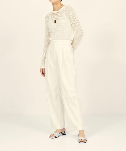 カーゴパンツをベースに、ディテールをそぎ落としてクリアな素材で仕上げた2タックパンツ。 クリアなオフホワイトは、スタイリングを春顔にしてくれる、立ち上がりにおすすめカラーです。 【デザインポイント】 ・トップスinが様になるよう、ウエスト位置を高く、ベルト幅をやや太めにし腰高に見えるように設定 【素材ポイント】 ・レーヨン・コットンのなめらかで微光沢が上品なツイル素材 ―――――――――――――――――――――――― グリーンレーベル リラクシングから生まれた新しいレーベル『BRACTMENT(ブラクトメント)』。 21SS Clean Ethnic BRACTMENTのベースとなるテーラリング・ミリタリーにEthnicな気分を取り入れたクリーンなスタイルを提案。 シルエットや素材にこだわりながら、抜け感を持たせたベーシックアイテムを軸に メキシカンディテールや、リネン、ネップなど粗野な素材をBRACTMENTらしくクリーンにエッジィに落としこみ、アクセントに。 変化したライフスタイルに寄り添いながら自分らしくファッションを楽しむ。遊び心の提案。 ―――――――――――――――――――――――― 【注意事項】 ・商品の色味は、撮影場所や光のあたり具合などにより色味が違って見える場合がございます 。 また、お客様のお使いのPCのモニター環境などにより色味が違って見える場合がございます。 詳しくは、着用画像以外の商品詳細画像をご確認ください。 店舗へお問い合わせの際は、全国のgreen label relaxing各店舗まで下記の品名/品番をお申し付け下さい。 品名:BM サイドアジャスト 2TK PT 品番:36141992131
