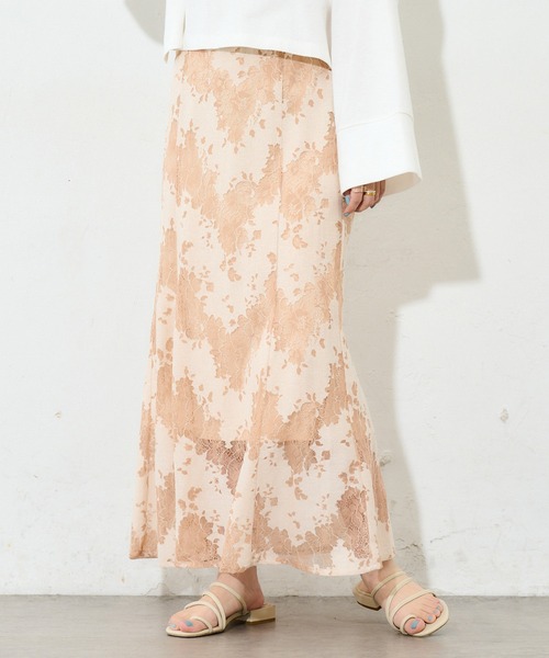 女性らしく仕上がるレースマーメイドスカート。 すっきりとした腰回りから、裾に向かって広がるマーメイドシルエット。フラワー柄のレースを贅沢に使用した、品のある女性らしさが魅力です。 リラックス感のあるバックゴムウエストが、気取らないお洒落を演出。 スタイリングに取り入れるだけで、春夏らしい装いに仕上がる一着。 カジュアルなトップスを合わせた、ミックススタイルがおすすめです♪ ************* 裏地:あり 透け感:あり 伸縮性:なし 光沢感:なし 生地の厚さ:やや薄い ************* ※ご覧のモニター環境や撮影環境により実際の商品と多少色味が異なって見える場合がございます。 【お気に入り登録がオススメ】 ●商品のお気に入り登録 「在庫残りわずか」の通知や、「完売カラーの再入荷」、「セール」の通知を受けることができます。 ●ブランドのお気に入り登録 新商品や再入荷等、ブランドのお得な情報を受け取る事が出来ます。