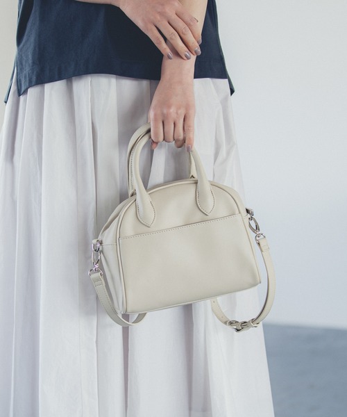 トレンドデザインころんとした丸みが可愛いトレンドのミニボストンバッグです。コンパクトに見えて長財布やペットボトルなどしっかりと収納できます。カジュアルスタイルにもオススメです♪