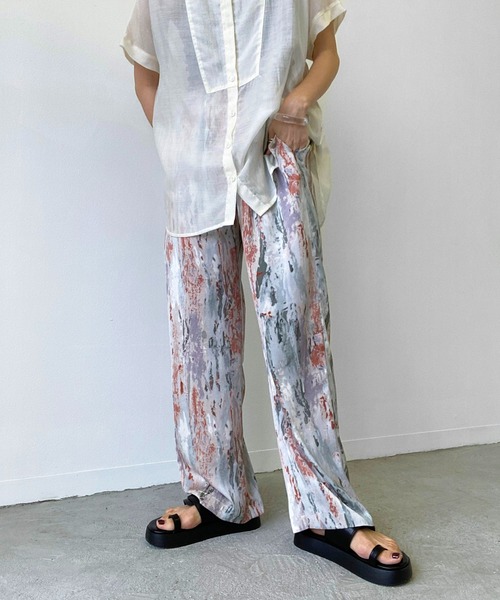 +++Birthdayroom NEW ARRIVAL ITEM!柄パンツ+++【大人気のペイント柄がパンツで登場。】注目の高い、絶妙カラーバランスのペイント柄が映えるパンツ。ワイド感がリラックスムードを与えてくれる。ヒールを合わせて少しレディーライクな雰囲気もアリです◎シンプル目なトップスや、シアートップスを合わせるのがおすすめ。●透け感:なし。●伸縮性:なし。窮屈感はありません。●光沢感:なし。マットな質感。●生地の厚さ:春秋向けの素材感。≪POINT≫◎一気に洒落度の高いコーデに◎コーディネートが華やかに仕上がる1枚。お洒落なのに楽な履き心地な優秀アイテム。◎盛れるスタイル◎脚のラインを全く拾わないので、ヒールを合わせればより一層盛れます。【ATTENTION】※撮影場所やお使いのモニター環境により若干お色味が異なる場合がございます。ご了承下さい。※製品によっては染料の特性上、湿った状態や汗をかいた状態での長時間の放置、または摩擦により、他のものへ色移りする恐れがありますので、着用時にはご注意下さい。※お洗濯は洗濯ネットを使用し、他のものとの混合洗いはお避け下さい。色落ちや色移りの原因となります。 タンブラー乾燥はお避け下さい。※風通しがよく、湿気の少ない日の当たらない場所で保管して下さい。※また製品加工上、お手元に届く際に匂いが生じる場合がありますが、 ご使用を続けていく事により匂いは軽減されます。【Information】▽商品のお気に入り登録カートの右のハートをクリック!完売カラーの再入荷通知を受け取ることができます。▽ブランドのお気に入り登録ブランド名をクリック!新商品や再入荷の通知を受け取ることができます。【Birthday room/バースデイルーム】トレンドの一歩先へ。カジュアルでラフな大人の女性を演出するアイテムを提供。※他のキャンペーンにより、期間中に価格が変動する場合があります。※セールは予告なく終了させていただく場合もあります。