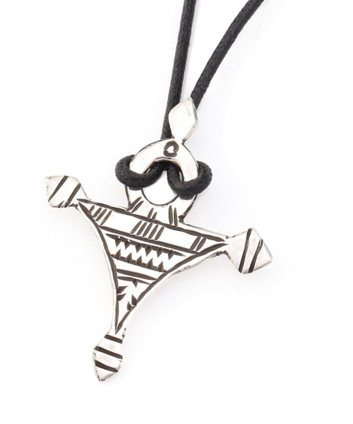 北アフリカの先住民族の言語をモチーフにしたシルバーネックレス。 全体に彫られた文様が美しく、存在感のあるネックレスになります。 紐部分の結び目を移動させることで、紐の長さを調節することができます。 目を引くデザインのため、シンプルなスタイルをなど、 様々なコーディネートのアクセントとしてご使用頂けます。 ■型番:BAGAZEN SANSALT NECKLACE 【ADWAT'N TUAREG(アダワットゥン トゥアレグ)】 アフリカはサハラ砂漠で暮らすトゥアレグ族。インディゴ染めの青いターバンで男性が顔や身を隠すため、「青衣の民」と呼ばれ、女系社会としても有名な砂漠の遊牧民です。彼らの作る銀製品は代々受け継がれ、伝統工芸の一つになっています。 アフリカにおいて初めて銀細工を始た民族との説もあり、ヨーロッパではインディアンジュエリーと双璧をなすネイティブジュエリーとしても認知されています。 一刀一刀手彫りで丁寧に彫られる模様は、魔よけなどの意味が込められており、古代の神話や民話の影響が色濃く残っています。 シャープでありながら丸みがある独特のデザインで男女問わず楽しめるシルバーコレクションになっています。 ADAWAT'N TUAREG 商品一覧はこちら