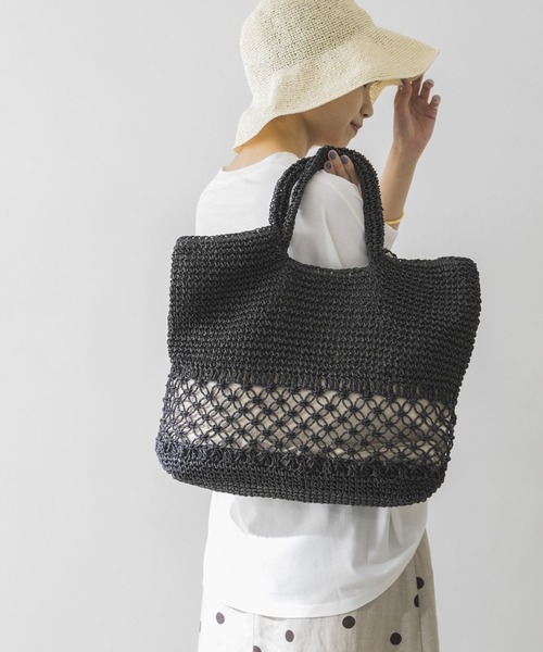 【夏のコーディネートに映える、清涼感をまとったトートバッグ】1点投入でコーディネートに爽やかな清涼感をプラスする夏ムード満点のペーパーバッグ。A4サイズが収納可能で実用性に優れたトートタイプ。持ち手の長さも程良く、肩にかけられるのでデイリーに使い易く普段使いに大変重宝します。バックの中で小物がバラつかないようジップと小物入れがついており機能性も兼備しています。※A4サイズ収納可能重量 : 約470g※摩擦、汗、水などで色落ちする可能性がありますので、特に淡色系の衣類などとの組み合わせにご注意ください。※消毒液(アルコール、非アルコール)による色落ちやシミの恐れがあります。直接塗布したり、手に付着したまま触ったりしないようにして下さい。※その他お取り扱いに関しましては、商品に付属のアテンションタグをご覧ください。※商品画像は、光の当たり具合やパソコンなどの閲覧環境により、実際の色味と異なって見える場合がございます。予めご了承ください。※商品の色味の目安は、商品単体の画像をご参照ください。