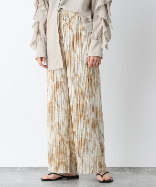 柄は流行のネイルアートなどに用いられている、ニュアンス柄をプリントしたパンツです♪ ランダムなプリーツを入れ、広がりすぎないシルエットがポイント★ イージーパンツですが、太めすぎないシルエットが特徴です。 これからの季節、シャツなどに合わせてサラッと履いて頂けます。 足元はフラットサンダルでリラックススタイリングがおすすめです! -INFORMATION- ◆商品のお気に入り登録 完売していても再入荷時に再入荷通知を受け取ることができますので、是非ご登録ください♪ ◆ブランドのお気に入り登録 新商品や再入荷などの情報を受け取ることができますので、是非ご登録ください♪
