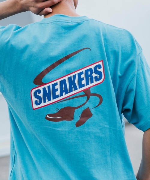 スニッ●ーズやゴースト●スターズを模したパロディプリント半袖ビッグT。 男女を問わず着用可能なデザインで、カップルや家族でシェアしたりプレゼントにもおすすめ。 オーバーサイズに着てこなれ感を出したりと、女性の方にも楽しんでいただけるアイテムです。 ■ 遊び心を感じるパロディデザイン 【A.SNEAKERS】 【B.FOOD BUSTERS】 ス●ッカーズやゴー●トバスターズを模した印象的なバックプリントをオン。 シンプルなボトムスと合わせるだけで、お洒落なスタイリングが完成します。 ■ ザックリとしたサイジング 肩幅と身幅にたっぷりと余裕を持たせたビッグシルエットが印象的なアイテム。 ざっくりとしたサイズ感が魅力で、サッと着るだけでトレンド感のあるコーデに。 女性の方に着て頂くとドロップショルダーとひじに現れるたまり感が可愛さをプラス! ■ ユニセックスデザイン 男女を問わず着用可能なデザインで、カップルや家族でシェアしたりプレゼントにもおすすめ。 オーバーサイズに着てこなれ感を出したりと、女性の方にも楽しんでいただけるアイテムです。 ■ スタイリング 1枚での着用はもちろん、シャツとあわせたレイヤードもオススメのアイテムです! トレンドのシェフパンツやワイドパンツ、オーバーオールとも相性抜群です。 キレイめにスラックス、カジュアルにデニムパンツなどボトムスを選びません。 =スタッフ着用コメント= ・モデル 身長180cm / 体重64kg / 普段XL着用 着用サイズ:L 着丈:長すぎず、バランスのとれた丈感でした。 肩幅:しっかり肩の落ちたドロップショルダーでした。 身幅:ゆとりがあり、リラックスできる着心地でした。 ・モデル TIFFANY:身長164cm B79/W60/H87 着用サイズ:S 着丈:お尻がすっぽりと隠れる、長めな丈感で着られました。 肩幅:ゆるっとしたシルエットで、楽な着心地でした。 身幅:とても余裕があるので中に着こむこともできそうです。 ・スタッフA:身長165cm / 体重52kg / 普段S-M着用 着用サイズ:M 着丈:お尻がほとんど覆える長さでした。 肩幅:肩が落ちたビッグシルエットですが、バランスが取れていました。 身幅:肩幅と同じく、大きめのサイズ感で、ひらひらしていました。 【お買い物をお楽しみいただく為に!】 ▼商品のお気に入り登録 完売カラーの再入荷通知や、ラスト1点の通知、セールの通知も受け取ることができます。 ▼ブランドのお気に入り登録 新商品や再入荷等、いち早くブランドのお得な情報を受け取ることができます!