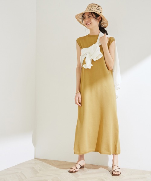 1枚でもレイヤードでも!あなたらしいスタイリングで夏を着こなして【素材】コットンのナチュラルな風合いにストレッチポリエステルを複合したコンフォート糸です。軽く膨らみがあり、綺麗な目の詰まったクリーンな表面感があります。日本国内紡績の糸です。 【デザイン・シルエット】身体のラインを拾わない絶妙なサイズ感のIラインシルエットのワンピース。ホールガーメントのストレスフリーな着心地です。ノースリーブですが二の腕が気になりにくい程よい肩幅にしています。 【カラー】シックなブラックと、落ち着いたアースカラーのブラウンとマスタードの3色展開。【おすすめのスタイリング】余計なデザインが入っていないので、パンツやシャツ、Tシャツ等とのレイヤードスタイルが楽しめます。バングルやネックレスなどのアクセサリーも映えます。足元はフラットサンダルで。----------------------------透け感:ほぼなし裏地:なし伸縮性:多少光沢感:なし生地の厚さ:薄手ポケット:なし洗濯方法:手洗い可----------------------------【モデル情報】モデル身長:167cm 着用サイズ:38※画像の商品はサンプルです。 実際の商品と仕様、加工、サイズが若干異なる場合がございます。※室外で撮影している画像は、光の影響で色味が若干異なって見える場合がございます。※商品の入荷状況は、店舗までお問い合わせをお願いいたします。店舗での商品のお取り扱いについてROPE'の商品は、ROPE'実店舗のみの取り扱いになります。