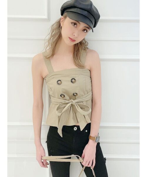 肩紐が取り外せる2WAY仕様と、フロントのトレンチデザインのマーブルボタンや、ウエストのヒモでよりフレア感を演出できるシルエットに拘ったアイテムです
