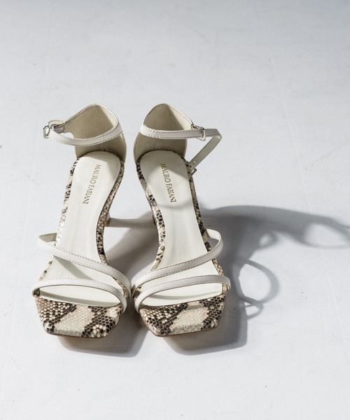【デザインポイント】 本革を用いた、スクエアトゥが今っぽさを演出してくれる高級感のあるサンダルです。かかとカバーから伸びるベルトもポイントで、アッパーの2本のベルトと合わせて、安定感と少しのモードを取り入れられるような、サンダルに仕上がっております。 またオフホワイトのカラーのみ、アッパーを配色仕様にしており、ファッションに合わせやすいカラーになるようこだわりました。 シンプルなコーディネートに合わせても映えるパイソン柄がポイントです。 【サイズ表記注意事項】 こちらの商品はインポート商品の為、商品に記載の弊社紙タグと、外箱のシール及び外箱バーコードシールとでサイズ表記に差異がございますが、 下記がサイズ表となります。 紙タグ表記 外箱表記 36 = 36 38 = 37 40 = 38 ※画像の商品はサンプルとなりますので実際の商品と仕様、加工、サイズが若干異なる場合がございます。 ※お客様のモニター環境により実際のお色と多少異なる場合がございます。