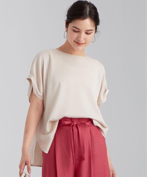 ◆引き続き注目のサテン素材のブラウスが登場致しました!◆ ビンテージ感のある表情が魅力の一着。 サテンの程良い微光沢感がコーディネートに軽やかさをプラスします。 バックのタックが後ろ姿をリズミカルに演出。 洒落っ気たっぷりの袖のロールアップ風デザインにも注目です♪ 真面目になりすぎずデイリースタイルにも馴染む一押しブラウス。 ボトムスインでもアウトでもスタイリングがサマになります◎ 【POINT】 ・こなれた要素たっぷりのデザイン性 ・キレイメはもちろん、カジュアルボトムスとも相性の良い生地感 ・前後で形の違う裾デザイン こちらは同素材でジャケット(品番:3616-137-1750)もございます。 ---------------------------------- 推奨着用シーズン:春~夏 ケア方法:手洗い・ドライクリーニング可 透け感:ナチュラル ややあり 光沢感:ややあり 生地の伸び:ややあり ---------------------------------- ▼お気に入り登録のおすすめ▼ 気になる商品は「お気に入り」登録がおすすめ! お気に入り登録商品は、マイページにて現在の価格情報や在庫状況の確認が可能です。 お買い物リストの管理に♪是非ご利用下さい。 ※画像の商品はサンプルです。実際の商品と仕様、加工、サイズが若干異なる場合がございます。 ※撮影時の照明の関係により、実際よりもやや明るく見える場合がございます。お色味に関しましては詳細画像にてご確認ください。またパソコンなどの環境により、製品と画像のカラーが若干異なる場合もございます。予めご了承ください。 店舗へお問い合わせの際は、全国のgreen label relaxing各店舗まで下記の品名/品番をお申し付け下さい。 品名:FFC ハンマーサテン T-BL 品番:3616-137-0873 #クルー#U#ネック#丸首#半袖#ミドル#オンオフ#キレイメ#無地