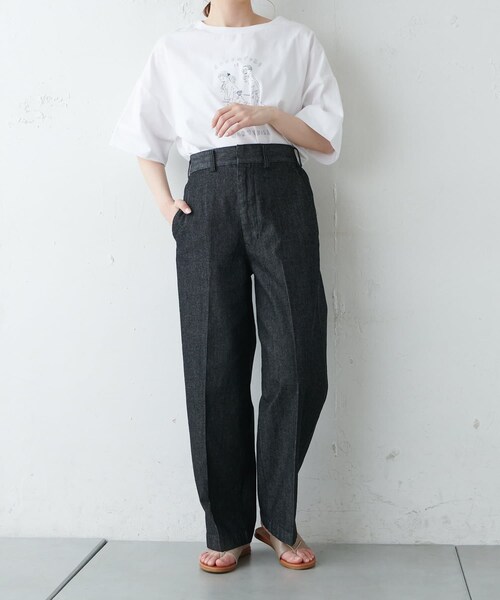 ピュアルセシン 2021 Spring collection 【with a Breeze】新しい価値観の生活の中でこそ、ピュアルらしさのモノづくりの持続とその中にも、エフォートレスな気分、「with a Breeze」風をまとい、丁寧な暮らしに寄り添える、洗練されたスタイリングの提案◇綺麗なシルエットのセンタープレスパンツ◇センタープレスで綺麗なシルエットのパンツ。シーズン問わず穿けるデニムは重宝すること間違いなし。ハイウエスト+センタープレスのコンビネーションで脚長効果も◎合わせるトップスやシューズによってクラシカルな雰囲気にも、カジュアルな雰囲気にも変化するので、1枚で沢山のコーディネートを楽しめます。同素材のジャケット(No.231517150)との合わせもオススメです。・センタープレスで美シルエット・シーズン問わず穿けるデニムシリーズ・カジュアルからクラシカルまで幅広いコーディネート・見た目よりもゆったりな穿き心地・MADE IN JAPAN===============================透け感:なし裏地:なし伸縮性:なし光沢感:ややあり生地の厚さ:普通【スタッフコメント】年齢:20代前半/身長:157cm/普段着用サイズ:Mサイズサイズ感:157cmで綺麗に穿ける丈間です。お尻周りもゆったりで締め付け感は感じませんでした。素材感:しっかりした素材感。程よい厚みと艶感でシーズン問わず着ていただけます。===============================※撮影場所やお使いのモニター環境により若干お色味が異なる場合がございます。特にロケの撮影では明るく見える傾向にございます。※予約商品はサンプルで撮影をしております。若干の仕様が変更になる場合がございますので予めご了承の上ご注文くださいますようお願いいたします。