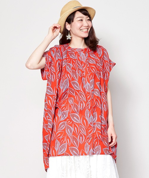 風に揺らぐビッグシルエットのリラックスブラウス。リゾート感あふれるリーフ柄を落ち着きのある配色でまとめました。涼やかで心地良いインド綿。日常使いにナチュラルに溶け込む一着です。 ※こちらの商品は1点1点職人による手作りとなります。その為、生地の取り方により柄の配置や形・色合いなど若干異なる場合がございます。あらかじめご了承ください。 ※屋外での撮影画像は、光の当たり具合で色味・カラーが違って見える場合がございます。商品のカラーは、スタジオ撮影の画像をご参照ください。 Amina Collection Co.,LTD.