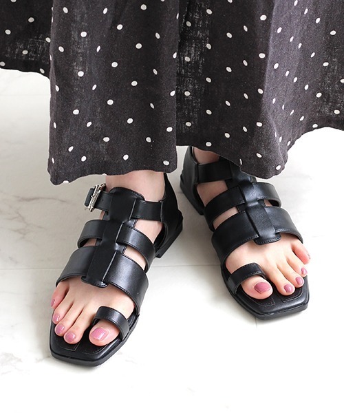 甲をしっかりと覆う、ホールド感抜群のグルカサンダル。トレンドのトングデザインでスタイリッシュな印象に。ワンピースなどのリゾートスタイルはもちろん、大人カジュアルなスタイルにも好相性です。リラックスして履けるフラットソールでデイリーに活躍します。※撮影は室内で行われており、ライティングにより実物と色味が少し異なる場合がございます。