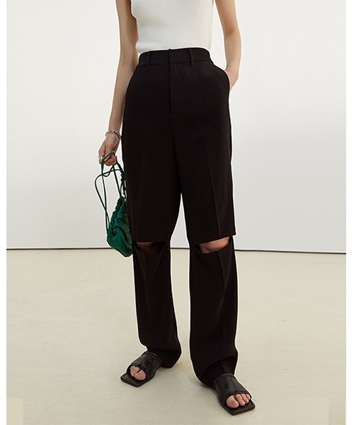 "国内でchucllaだけが、正規取扱いするコンテンポラリーブランド "リラックスムードな膝カッティングハイウエストスラックス。膝のカッティングデザイン性により機能性もありハイセンスな一着に。程よくワイドなシルエットとハイウエストにご着用いただくことで、脚長効果も得られます。デザイン性も高くラグジュアリーで上品な1着です。【Fano Studios】トレンドに敏感な大人に似合うシンプルながらどこかエッジィの効いたデザインに、モードの流れを取り入れた新たなスタイルを発信するブランド。女性らしさを備えたオーバーサイジングを軸に、幅広くコーディネートすることのできるリアルクローズは、現代女性への特別な一着に。取扱注意事項※発送時の折シワがある場合がございますが、 ハンガーにかけ保管いただくと自然とうすくなっていきます。※サイズは、測定方法と測定者によって多少の誤差がありますのでご了承下さいませ。 また体型によって、サイズ感に個人差がございます。(平置き採寸)※商品によってはシワがつきやすく、畳ジワや折りジワなどが強く出る場合がございます。 その際は加湿した風呂場に数時間干すか、スチームアイロンでのお手入れをお勧めしております。※生地の素材上、においが気になる場合がございます。 その際は陰干しして頂くと、ほとんど感じられなくなります。※レース等の繊細な素材を使用している場合には、お取り扱いにご注意下さい。※お洗濯の際には、洗濯専用ネットをご使用の上、個別での洗濯ををお勧め致します。 お色物は、色移りする可能性がございます。※着用画像は撮影状況や光によって、多少異なる場合がございますので、置き画像をご確認下さい。