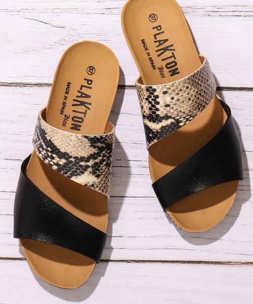 幅の広いストラップが目をひく、シンプルながら存在感を放つサンダル。ブラックはパイソン柄とのコンビでモードに、ホワイトは白と白パールの素材コンビ、ベージュはゴールドとのコンビでシンプルな中にクラス感の漂う1足です。甲を全て覆うのではなく2ストラップにすることで抜け感が出ます。甲の深いところを押さえるので長時間歩いても楽なところも嬉しい◎デニムなどと合わせて普段使いから、マキシワンピなどのリゾートコーデまで幅広くお使い頂けます。【PLAKTON】スペインで生まれたフットウェアブランド。履き心地を追及したコルクソールのサンダルが有名で、履き心地とファッショナブルなデザインを兼ね備えたアイテムを世に送り出す、日本にもファンの多いブランドです。※海外製品は日本製品と検品基準が異なります。日本製に比べると基準が甘く、細かな傷や糊付け跡などが見られる場合がございますが不良品ではございません。予めご理解頂いた上でご注文下さるようお願いいたします。【スタッフの着用感想】普段は24.0を履いています。Lサイズ(39)は大きかったのでMサイズ(37)にしたところ、ぴったりでとても履きやすいです。履き心地が良いので通勤時から長時間のお出かけまでヘビロテしてます。【サイズについて】本商品は、箱と商品の表記サイズが異なります。※サイズ換算(表記)はあくまで目安となります。箱:S商品:35箱:M商品:37箱:L商品:39箱:XL商品:40