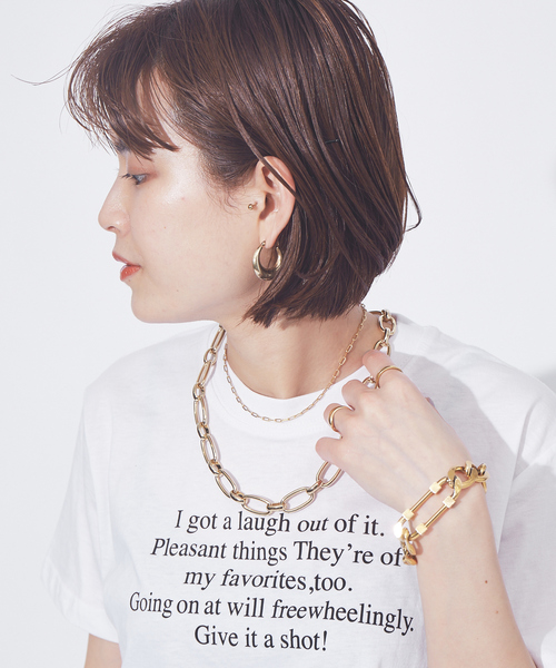 しっかりとした存在感がありながらも、シルエットが上品なチェーンネックレス。長さ調整が可能で、引っ掛ける場所で印象が変わるのもポイント。シンプルなTシャツスタイルに合わせるのがおすすめです。※着用モデルは細いネックレスと重ね付けしております。【ucalypt/ユーカリプト】グラフィック・パッケージを手掛けるデザインチームが、2017年にスタートしたジュエリーブランド自然の世界からインスパイアを得てグラフィックをデザインする中で、 魅了された数々の自然・植物美しさ、その柔軟に変化する、 たおやかな姿を現実世界で表現し形にしたいとジュエリーデザインを始める。その唯一無二の美しい曲線をデザインに落とし込み、身にまとう人の魅力・美しさを 引き立てたい想いから、上質なmade in japanのものづくりを展開。