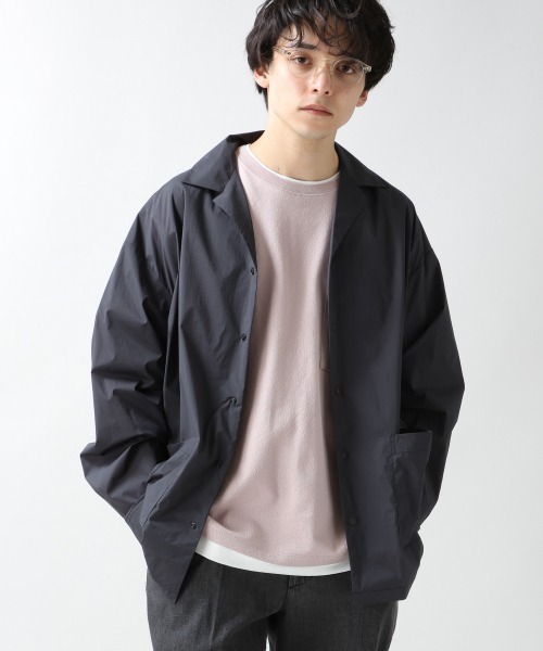 シャリ感が特徴のシャツジャケット。 首元をすっきり見せてくれるオープンカラー仕様で、身頃にはポケットを配置したシンプルだビジュアルに仕上がっています。 また、程良くストレッチも効いているので、着心地も抜群◎ サイズもバサッと羽織りやすいやや大きめなサイズ感なので、カーディガンやライトアウターとしても使いやすい逸品です。