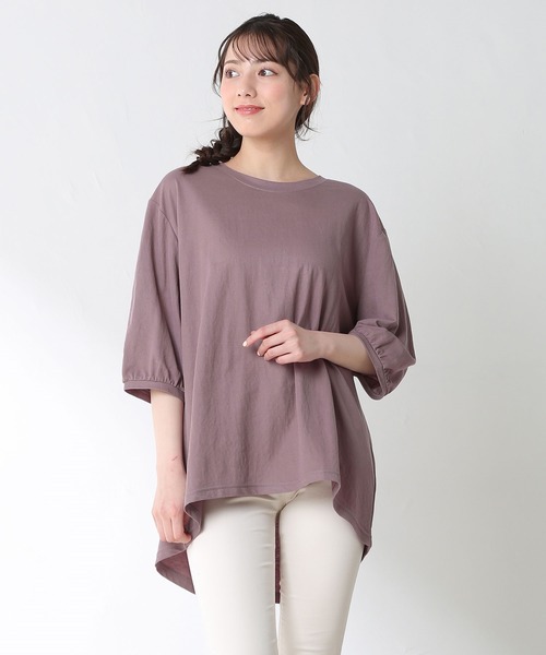 袖がふんわりギャザースリーブが今年らしい♪ 『UVカット』『吸水速乾』機能が付いた、清涼感のあるさらりとした素材で、これからの季節も快適♪ ゆったりとした、女性らしいAラインのシルエットで体型カバーも◎ シンプルなデザインで、デイリーに大活躍のアイテムです。 品番:578-13-6829 洗濯:手洗い可 ※サイズにつきましては若干の誤差が生じる場合がございます。 ※6分袖