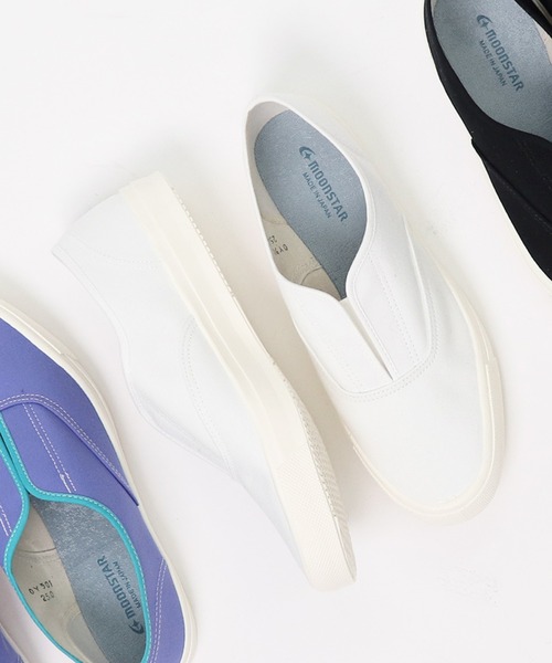 ■シンプルかつ履きやすいキャンバススリッポン■ つま先部分はほっそりスリムでスッキリと見せ、 甲部分はゴム仕様ですっぽりと包み込むメリハリのあるデザインに。 甲高さんも安心して履いていただけます。 脚の甲にあたるこの部分は、内側にゴムが入っているので、 着脱も楽にでき、フィット感があるので履き心地も快適です。 【MOONSTAR/ムーンスター】 日本・久留米のシューズブランド。 1873年創業、地下足袋の生産から始まり140年もの間、靴を作り続けてきた老舗ブランド。 「バルカナイズ製法」を用いたスニーカーを展開し、クオリティの高さに定評があります。 熱反応によりソールとアッパーを接着させるこの特殊な製法を国内で採用しているメーカーはわずか。 手間がかかるが、丈夫で美しい風合いに仕上がるといった良さがあります。 一人ひとりに心地よい靴を目指し、今日まで続けてきたまじめな靴作りに自信と誇りを持って“MADE IN KURUME”の靴を生み出し続けています。 < 便利なお気に入りの登録 > ◇商品お気に入りの登録 ♡をクリックして再入荷の通知や、ラスト1点の通知、 プライスダウンの通知がいち早く届くようになります。 ◇ブランドの登録 新商品や再入荷など、いち早くブランドのお得情報が届きます。 是非ご登録ください◎ ※お取扱いにつきましては、商品についている品質表示をご確認ください。 ※ご覧いただいておりますPC、スマートフォンの環境により、 若干製品と画像の色が異なる場合がございます。予めご了承下さい。