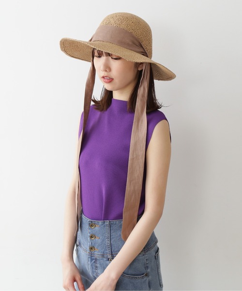 涼しげな雰囲気のペーパーハットに、麻素材のリボンをポイントにしたデザインです。太幅のリボンは、そのまま垂らしても、結んでもアクセントになります。つば広なので、被るだけで日よけにも、小顔効果も期待できそうです。コーディネートに似合うベーシックカラーで揃えています。※麻素材のリボンはシワになりやすいので、ゆるめに結ぶのがおすすめです。