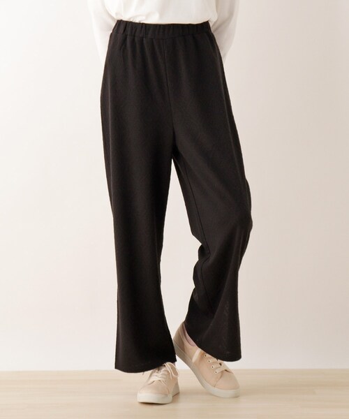 【デザイン】 華やかな模様が特徴のジャカードパンツ。 生地には伸縮性があり、ウエストゴム仕様なので履き心地良くリラックスして過ごせます。 サイドスリット入りで、抜け感のある大人な印象のスタイリングになります。 ※ポケットなし 【生地感】 柔らかな生地感で、履き心地がイージーなパンツです。 ※裏地なし 【サイズ】 小さいサイズSサイズあり。※01(S)サイズはWEB限定サイズです。 #CutieBlonde#Cutie#cutieblonde#cutie#キューティブロンド#キューティ#20代#30代 モデル情報:身長170cm B80 W59 H85 着用サイズ:02(M) 店舗へのお問い合わせ商品番号:256-62017 ●製品寸法: 01(S):W58~62cm H96cm 股下65cm 前股上32cm 渡り幅31cm 裾幅25cm 02(M):W62~66cm H98cm 股下66cm 前股上33cm 渡り幅31cm 裾幅25cm 03(L):W66~80cm H100cm 股下67cm 前股上34cm 渡り幅32cm 裾幅26cm 備考: