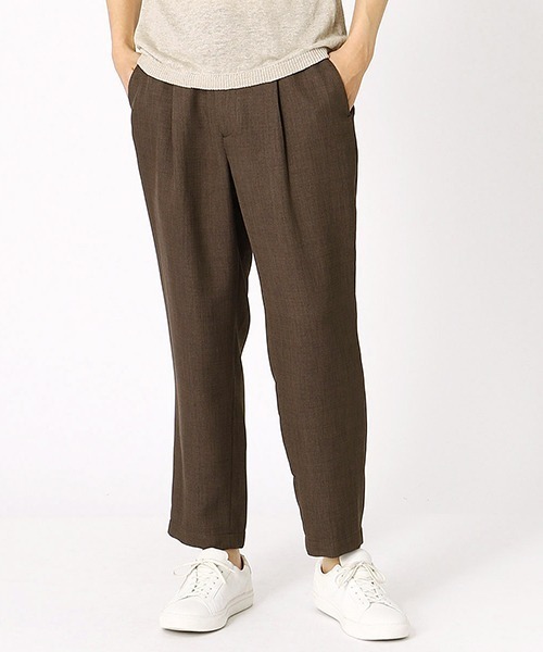 ◇ワンマイルウェアとしてもおススメ◇ 《素材》ざっくりとした、凹凸のある素材感が特徴。また上品な光沢感を併せ持った素材です。 ポリエステルの特性を生かし、シワになりにくく、お洗濯ができるので、イージーケア性にも優れています。 《デザイン/シルエット》 ラフな素材感と、表面の光沢がマッチして、カジュアルながらも上品なイメージ。 ウエストに入れたゴムと、タック入りのデザインで、快適な履き心地が特徴です。 ヒップ周りにゆとりを持たせ、適度にテーパードさせたリラックス感のあるシルエットです。 ※画像の商品はサンプルとなりますので実際の商品と仕様、加工、サイズが若干異なる場合がございます。 ※こちらの商品はFIVE FOXes独自の採寸方法となっています。 本サイトのサイズガイドと採寸方法が異なる場合がありますのでご了承ください。