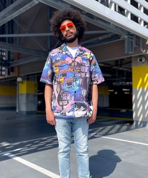 品番:A022070KBAB 総柄プリントに周囲の視線もくぎづけになる?半袖デザインシャツ。ストリートテイストなプリントがたまらない1着はトレンドのオーバーサイズシルエット。ルーズに着こなしてDIESELストリートファッションを楽しみたい。ハーフパンツと着こなすとリラックス感のあるコーディネートに。こんな総柄プリントシャツでリゾートに遊びに行くのもいいかもしれない。