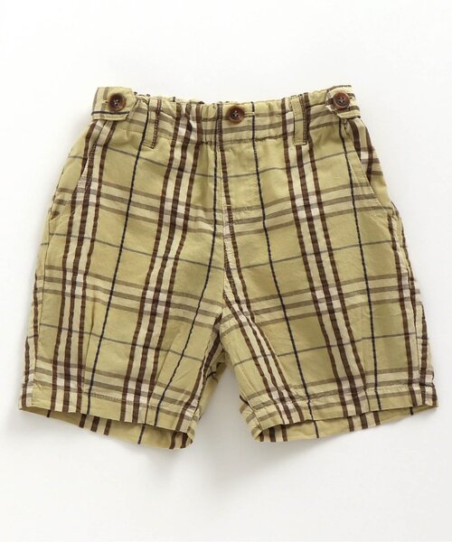 apres les cours(アプレレクール)のパンツ「デニム・チェックハーフパンツ 5分丈」は、細部にまでこだわったデザインがおしゃれに敏感なママに人気!