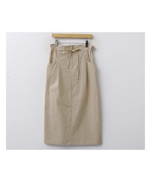 ナチュラルムードのコットンロングスカート。 ストリングの調節で自分のサイズに合わせて穿けるのはもちろん、ウエストにナチュラルなシャーリング感が作られてとても可愛い♡ 両ポケットデザインも可愛らしいアクセントをプラスしつつ、楽ちんながらお洒落に穿いて頂けます♪