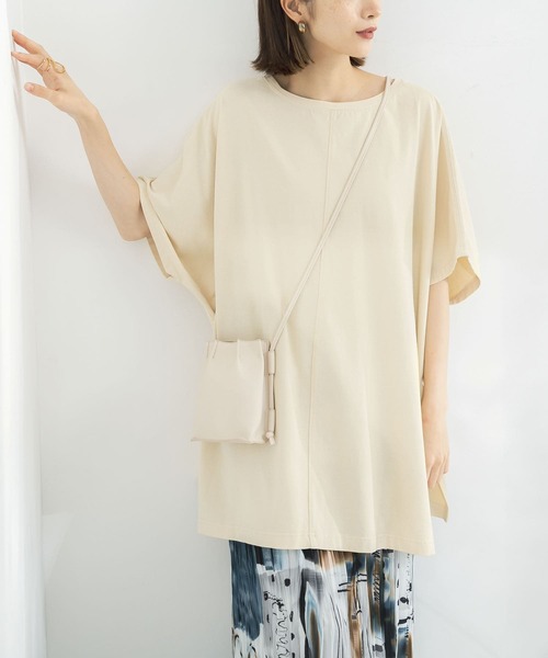 【カジュアルながらも女性らしさを引き立てるBIGTEE】 存在感のあるオーバーサイズのTシャツ。ワイドシルエットですが、少し開いた首元がカジュアルさを軽減します。程よく厚みのある生地感で体のラインを拾いすぎず、1枚着でも映えるトップスです。 POINT ・体型カバーが叶うシルエット ・カジュアル過ぎないデザイン ・綿100%のサラッとした素材 COORDINATE シルエットが際立つよう、タックインせずサラッと着るのがおすすめ。着回し力が高いので色違いでお持ちいただくのも◎ ----------------------------- 透け感 : ややあり(OFFのみ) 伸縮性 : ややあり 裏地 : なし 光沢 : なし ポケット : なし ----------------------------- ※この商品は、特殊な加工をしているため、色合いや風合いが一枚一枚異なります。あらかじめご了承ください。 ※商品画像は、光の当たり具合やパソコンなどの閲覧環境により、実際の色味と異なって見える場合がございます。予めご了承ください。 ※商品の色味の目安は、商品単体の画像をご参照ください。