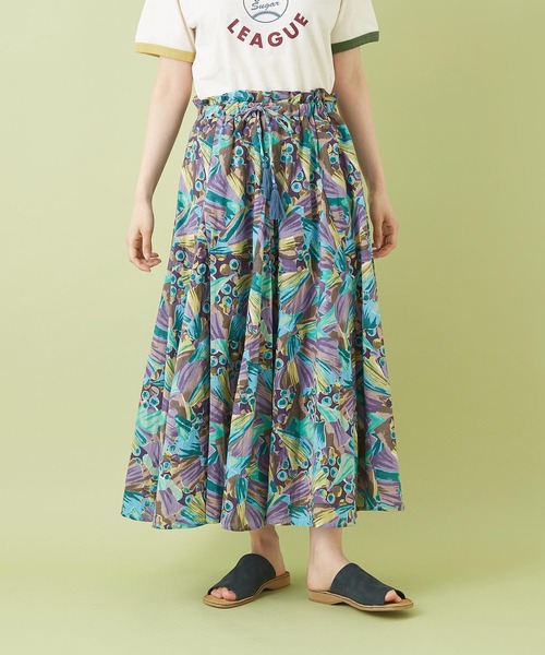 ■リゾート気分を盛り上げる、カラフルな花柄スカート 南国を思わせるアロハなフラワープリントがコーデの主役。 着るだけで気分も軽く爽やかな気持ちにさせてくれるフレアスカートが登場しました。 いつものコーディネートにプラスするだけで、シンプルなコーディネートが一気に華やかになるおすすめの一枚です。 カジュアルからキレイめまでマルチに活躍すること間違いなし。 ■タッセル使いが可愛い、総ゴムのイージーデザイン ウエストは総ゴムのイージーデザインにすることで、普段使いにぴったりのラクチンな着心地に。 リボンを通しているので、お好みのフィット感で合わせることができるのもポイントです。 紐の先はタッセル使いにすることでエスニックなムードをプラスしました。 たっぷりとギャザーを入れてボリュームあるシルエットを作っています。 ■お気に入りの1枚がみつかるアソート展開 カラーによって総柄のグラフィックが異なるアソートデザイン。 ボタニカルな雰囲気たっぷりのシックな花柄が大人のカジュアルスタイルを華やかにみせてくれます。 豊富のパターンからお気に入りの1枚がきっと見つかる、キューブシュガーこだわりのリゾート柄です。 ■爽やかで涼しげなコットン サラサラとした肌触りの綿を使用。 通気性、吸汗吸湿性に優れている特徴で春夏にピッタリな素材です。 汗ばむ季節もサラリと快適に過ごせるのもう嬉しいポイント。 コットンならではのソフトな質感とナチュラルな風合いをお楽しみ下さい。 ※モニター・環境等により実際の商品と多少色味が異なって表示される場合がございます。予めご了承をお願い致します。 【アイテムカテゴリ】 ボトムス スカート フレアスカート ロングスカート ギャザースカート マキシスカート 花柄スカート 【デザイン】 カラフル 配色 クレイジーパターン マルチ 夏カラー ヴィンテージ加工 ビンテージ加工 古着風 ユーズド風 花柄 フラワー ボタニカル柄 【シルエット】 ビッグシルエット オーバーサイズ 大きいサイズ ゆったり 大きめ 楽ちん 動きやすい ジャストサイズ Mサイズ ミディアム丈 ミドル丈 ロング丈 マキシ丈 ミモレ丈 ひざ下丈 ロング丈 aライン フレア ウエストゴム 総ゴム 【生地・素材】 コットン 綿 布帛 【ファッションテイスト】 大人カジュアル アメカジ アメリカンカジュアル ペアルック おそろい ストリートスタイル ストリートファッション ストリート系 リゾートスタイル リゾートファッション アウトドア フェス ライブ 旅行 ビーチ ガーリィ ガーリー 【シーズン】 春 春夏 夏
