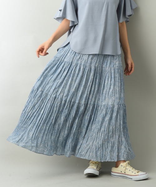 ナチュラルなシワ感が魅力ティアードプリーツスカート絞りのクリンクル加工を施した今季人気のスカートです。ティアード切替をしているので裾に向かって自然に広がるシルエットがとてもきれいです。動きに合わせて揺れるナチュラルなシワ感が大人フェミニンな印象に演出してくれ、カジュアル過ぎない素材でスタイリングの幅も広がります。ウエストはゴム仕様になっていて締め付けのストレスも少なく、華やかさと動きやすさのある1枚です。シンプルにコンパクトなブラウスやカットソーをコーデすればオフィススタイルに◎もちろん、Tシャツやスエットでデイリーにも活躍するお勧めな1枚です。■取扱いご自宅でイージーケア(手洗い)ができます。詳しいケア方法は製品についている品質表示【取り扱いについてのご注意】をご確認ください。INTERPLANET/actuel(インタープラネット/アクチュエル)■conceptいつだって私らしく、私自身のスタイルが決まる。。。時代や年齢に媚びない『らしさ』を纏って生きる女性へ。旬なベーシックと抜け感のあるカジュアルをMIX。そんな大人カジュアルコーデを提案します。■お気に入りの登録についてショップ・ブランドのお気に入り登録でクーポンやタイムセールの通知などお得な情報を受け取ることができます♪また、気になるアイテムのお気に入り登録でセールや再入荷の通知など受け取ることができます。