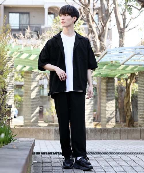 ソフトな着心地で上質感溢れ光沢感のあるさらっとしたポリエステル素材のワイドシルエットのセットアップスーツ! 果物の梨のような質感の梨地ポリステル素材を使用した半袖オープンカラーシャツジャケット&パンツのセットアップ。 光沢感があり上質感溢れる素材でストレッチが効いているので着心地◎ 軽量かつ涼しげなオープンカラーがカジュアルコーデにフィットしトレンドのオーバーサイズで韓国ファッションなどの旬な着こなしが楽しめます。 ざっくりとしたオーバーサイズのシャツはフロントに大きめのポケットをデザインする事で"より"こなれた雰囲気に仕上がっています。 トレンドのシェフパンツはゆったりとしたサイズ感で太ももから裾に向かって細くなるテーパードシルエットを採用しているのでゆるめ&キレイめな印象に! セットアップとしてはもちろん、それぞれ単品としてもトレンドを意識した着こなしを楽しめるアイテムです。 【カラバリ】 ・グレージュ ・ブラック ・ブラウン ・ベージュ 【お買い物をお楽しみいただく為に】 ▼商品のお気に入り登録完売カラーの再入荷やラスト1点の通知、セールの通知を受け取ることができます。 ▼お気に入りショップに追加新商品や再入荷など、イチ早くショップのお得な情報を受け取ることができます!