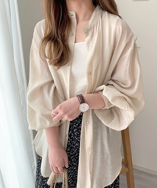 今年もトレンドのシアーシャツ。 今年はバンドカラーで春らしい色味も揃えて登場◎ ボリュームのある袖、合わせやすい丈感で後ろのタックなどもポイント♡ 夏は日焼け対策の羽織などにも◎