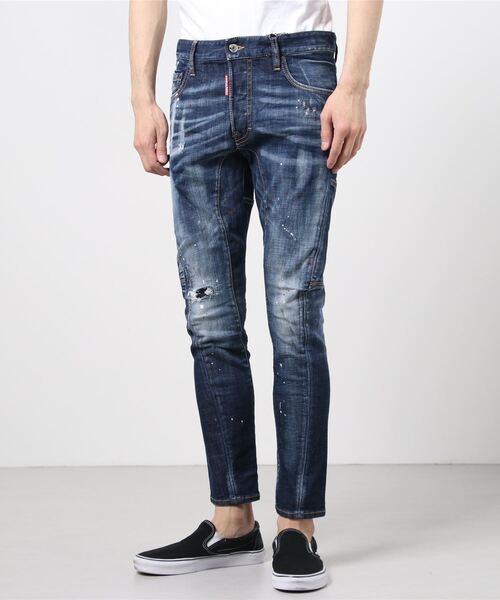 シルエット: TIDY BIKERバイカーパンツからインスパイアされたモデル。立体フォルムや膝裏の切り替えのデザインが特徴。洗練されたモードなシルエットに仕上げている。DSQUARED2で人気なシルエットのひとつ。ポケットの携帯電話のシルエットの色落ち加工がポイント。