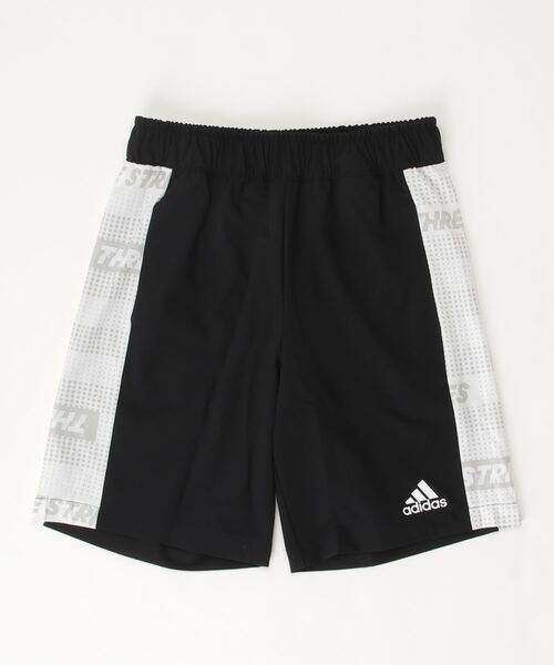 Woven素材。ポケットつき。サイドが太いラインでラインの中が文字のグラフィック。