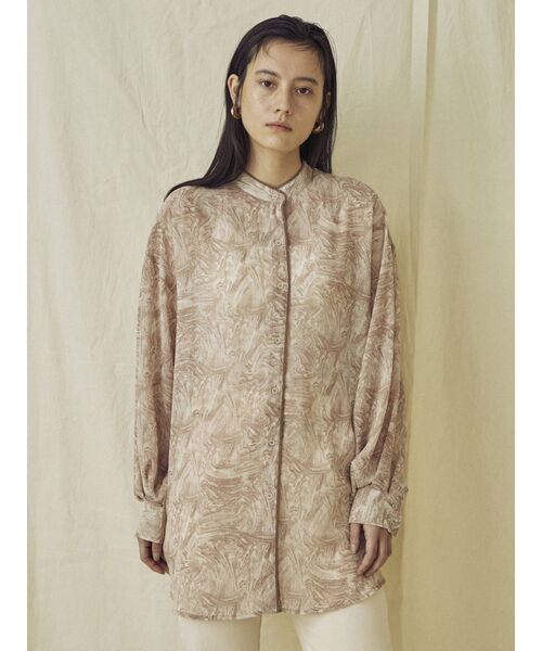 オーバーサイズで着れるレトロシャツ 【POINT】 シアー感のある素材を使用したオーバーサイズの柄シャツ。 スタイリングのアクセントになるアイテムです。 レトロ感たっぷりのマーブル柄は、今年らしいスタイリングを作りやすい1枚。 軽い羽織としても取り入れやすい素材感です。 【スタイリング】 パンツ合わせでカジュアルにスタイリングしたり タイトスカートを合わせた綺麗目スタイリングにもおすすめです。 ※掲載画像はサンプルでの撮影となり、サイズ感と実物は若干異なる場合もございますので、予めご了承ください。 ※商品の色味は、屋外や屋内の光の照射や角度により実物と色味が異なる場合がございます。 ※着用、お取り扱いの際は、商品についている品質表示とアテンションタグを必ずご確認下さい。 『お気に入り登録』でお得な情報! 『商品のお気に入り登録』で再入荷通知や、ラスト1点の通知、セール通知も受け取ることができます! 『ブランドのお気に入り登録』で新商品や再入荷など、お得な情報を受け取ることができます!
