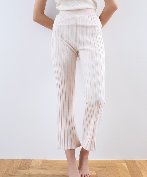 【素材・編地から計算しつくされたシルエット】 ストレッチの効いた細い糸を使用し、もちもちとした着心地のフィットフレアパンツです。 細身なシルエットですが、しっかりしたストレッチとレーヨン混の落ち感で想像より着やすいニットパンツとなっています。 通常より太いリブ編みにすることで出来る凹凸感を利用してプリーツのような見え方を表現。この編地にすることで、インパクトのあるデザインと、ラインを拾い過ぎないきれいに広がるフレアシルエットが実現しました。 Backribbon cachecoeur peplumknitとのSETUP着用はもちろん、 レギンス感覚でチュニックやBIGトップスと合わせるのがおすすめです。 〔注意事項〕 ・商品のサイズに関して個体差があるため多少の前後がございます。予めご了承ください。 ・商品のカラーは撮影場所やお使いのモーターによって若干異なる場合があります。予めご了承ください。 ・着用又はお取扱いに関しましてはアテンションタグや洗濯ネームを必ずご確認ください。 プチプラ / プチプライス ガーリー / レブユー / パジャマ / ルームウェア / ワンマイル / フレアパンツ / リブ 【WEGO ZOZOTOWN お買い物ガイド】▼商品のお気に入り登録♡をクリック!完売カラーの再入荷通知や、ラスト1点の通知、セールの通知をお知らせします。▼ブランドのお気に入り登録新商品や再入荷、クーポンやセール情報など、いち早くWEGOのお得な情報を受け取ることができます。▼最短で翌日お届け商品をカートに入れた後、注文内容の確認ページで「即日配送」を選択していただければ、最短でご注文した翌日にお届け致します。