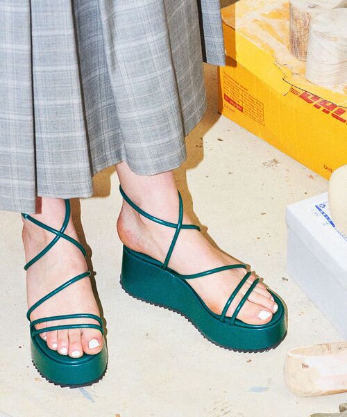 【デザイン】クロスのラインがモードな印象のアンクルストラップサンダル。存在感と安定感のある履き心地をフォローするウエッジソールです。幅広いコーデやシーンに合うシンプルなワントーンのデザイン。【備考】※画像と柄の位置が異なる場合がございます、ご了承下さい。※配送時の状況により、箱が破損している場合がございますので予めご了承下さい。※素材の特性上、ヒール・アッパー部分等に多少シワが入っている場合がございます。生地の特性上避けられませんので予めご了承ください。※製造過程におきまして接着材を使用しております。その為、接着剤が付着している場合がございます。又、生地の場合は染みている場合がございます。※商品画像はサンプル商品の為、仕様やカラー等に変更がある場合がございます。予めご了承ください。※光の当たり具合で色味が違って見える場合があります。◆この商品は『NO BOX(靴箱無し)仕様』商品です。【サイズ選びの目安】基本的に通常お選びのサイズで良さそうです。幅はやや細身です。≪目安≫S:22.0~22.5cm/M:23.0~23.5cm/L:24.0~24.5cm/LL:24.5cm~25.0cm足の形によって個人差がございます。あくまでも目安ですのでお気をつけ下さいませ。 スタッフA:普段のサイズ23.5cm S・M・Lの時は基本はMサイズペタンコのパンプスは24.0cmにすることもあります。ワイズD~E《特徴》足幅は普通で甲が低く厚みはないです。-----------------------試着サイズ:M(23.0~23.5cm)普段のMで良かったです。全体的に良かったですが、指幅部分はけっこうピタッとしてゆとりはあまりない感じでした。ストラップのベルトは5穴で調節が効きます。 スタッフB:普段のサイズ22.5cm S・M・Lの時は基本はSサイズ足長は22.7cmあるのですが幅が狭いため基本的には22.5cmを履きます。ワイズB~C《特徴》足幅が細く甲が低く厚みはないです。店舗へのお問い合わせ商品番号:P06-32029●製品寸法:S(22.0cm-22.5cm):対応サイズ22~22.5cm ヒール高6cm 幅9cm プラットフォーム4.5cm 重量片足約310gM(23.0cm-23.5cm):対応サイズ23~23.5cm ヒール高6.5cm 幅9.3cm プラットフォーム4.5cm 重量片足約345gL(24.0cm-24.5cm):対応サイズ24~24.5cm ヒール高7cm 幅9.7cm プラットフォーム4.5cm 重量片足約345gLL(24.5cm-25.0cm):対応サイズ24.5~25cm ヒール高7cm 幅9.9cm プラットフォーム4.5cm 重量片足約350g備考: