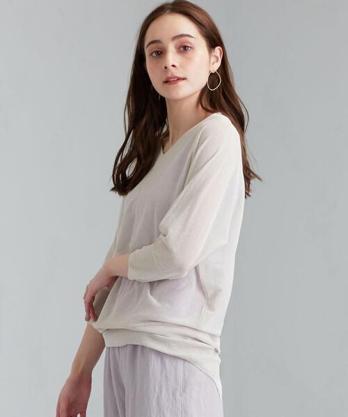 ◆引き続き注目のシアー素材でお作りした新作ニットをご紹介◆透け感が今年らしいニットプルオーバーが登場。コットン混の柔らかな風合いは、デイリースタイルにはもちろんお出かけ着としても重宝する事間違いなしです。センターラインやバックスリットがさりげないアクセントに◎着回しに便利なブラック・ナチュラルカラーに加え、清涼感のある爽やかなライムカラーをご用意致しました。取り入れるだけでコーディネートが軽やかに仕上がる一押しトップス。お手持ちのインナーを合わせてシアー感をお楽しみください♪【POINT】・さりげないアクセントになるネックライン・後ろ姿まで抜かりなくお洒落なバックスリット・女性らしさを演出する程よいシアー感----------------------------------推奨着用シーズン:夏~秋ケア方法:手洗い・ドライクリーニング可透け感:あり----------------------------------▼お気に入り登録のおすすめ▼気になる商品は「お気に入り」登録がおすすめ!お気に入り登録商品は、マイページにて現在の価格情報や在庫状況の確認が可能です。お買い物リストの管理に♪是非ご利用下さい。 ※画像の商品はサンプルです。実際の商品と仕様、加工、サイズが若干異なる場合がございます。※撮影時の照明の関係により、実際よりもやや明るく見える場合がございます。お色味に関しましては詳細画像にてご確認ください。またパソコンなどの環境により、製品と画像のカラーが若干異なる場合もございます。予めご了承ください。店舗へお問い合わせの際は、全国のgreen label relaxing各店舗まで下記の品名/品番をお申し付け下さい。品名:FM H/Wash シアードルマン 品番:3618-119-0406#V#ネック#六分#七分#八分#半端#袖#トップス#透け#感#シアー#無地#トレンド#重ね着#レイヤード