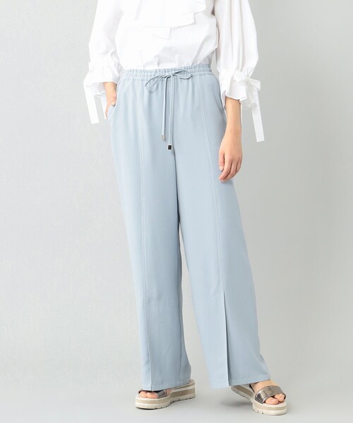 冷感があり上質な糸を使用したストレッチ地で仕上げたワイドパンツ。ウエストゴム&ドロストのリラックスしたハイウエスト型に、素材の良さを活かしたプレーンなデザイン。素材とシルエットが作り出すしなやかなドレープが、オンオフ気兼ねなくご活用いただけ、トレンド気分を高めてくれます。シワになりにくいイージーケアも嬉しいポイント。定番のブラックに、印象的なニュアンスカラーが目を惹くサックス、お洒落度をぐっと高めてくれるトレンドのホワイトをご用意しました。