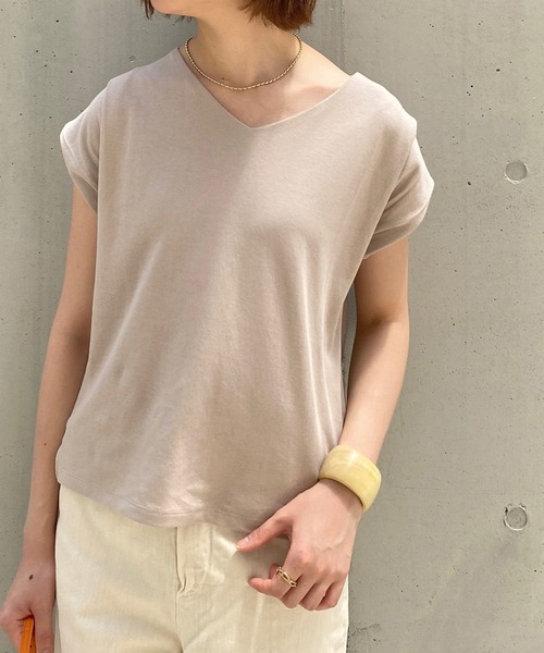 品の良さとリラックス感ある着心地が叶う上質カットソー●デザインきれいな落ち感と上品な光沢感のあるサラッとした軽い着心地のカットソーです。立体感のある肩や袖のタックデザインがポイントになり、シャープなVネックは顔のラインをスッキリと女性らしい印象に仕上げてくれます。ミドル丈でボトムとのバランスが取りやすく、オンオフ問わず兼用できる着回し力抜群なアイテム。気になる二の腕周りをさり気なくカバーしてくれるスリーブで、身体のラインを拾わず程よくゆとりのある着こなしに◎●おすすめコーディネートコンパクトな着丈でボトムを選ばずインでもアウトでも◎絶妙な襟開きとアウターに響きにくいサイズ感は、ジャケットなどの羽織アイテムのインナーとしても重宝します。●素材綿100%・さらりとした肌触りが魅力・吸水性、通気性が良い洗濯方法:手洗い透け感:なし裏地:なし伸縮性:ややあり生地の厚さ:普通光沢:ややあり【スタッフ着用コメント】《rea》身長:156cm/普通/普段サイズ:S/着用サイズ:Fサイズ感:腰あたりのジャスト丈です。程よくゆとりがあるので体のラインをカバーしてくれます。素材感:コットン素材でさらっとした肌触りで、生地もしっかりしているので透け感なく安心でした。着心地:Vネックが顔周りをすっきりと涼し気に見せてくれます。袖のタックが二の腕の華奢見え効果◎シンプルなデザインなので着回しやすいです。《SAYAKA》身長:159cm/普通/普段サイズ:S/着用サイズ:Fサイズ感:コンパクトな見た目ですが、身幅は程よくゆとりがあります。素材感:透け感のない素材。コットンの柔らかい肌触りです。着心地:深すぎないVネックで安心して着て頂けます。《まゆ》身長:171cm/普通/普段サイズ:M/着用サイズ:Fサイズ感:程よくゆるさがあるので、ボディーラインを拾いません。素材感:コットン素材なので肌あたりも柔らかく、気持ちいいです。着心地:とても楽です。袖周りのタックデザインで二の腕もカバーできます。ジャケットのインナーとしても活躍してくれます。《Ami》身長:158cm/普通/普段サイズ:M/着用サイズ:Fサイズ感:程よいコンパクト感があり、腰上の丈感になっています。素材感:しっとりとした透け感のない素材感です。着心地:柔らかくて肌触りのいい着心地です。【ご購入されたお客様のレビュー】《身長: 162cm/購入サイズ: F 》何てことないTシャツのようで、生地が厚く肌触りが良く、細部まで考えられた絶妙なデザインだと思います。身体のラインを拾わず、着心地も良い。カジュアルに着れるのはもちろん、職場でも綺麗目に着れます。ただ、色々考慮してもお値段がちょっと高いですよね。首周りとかしっかりしているので耐久性が良いのかな?と期待しています。型崩れしないように、ネットに入れて大事に洗って干してます。・サイズ感:3・軽さ:3・厚み:4・やわらかさ:3・伸縮性:3・透け感:2==============================【注意点】※画像の商品は光の照射や角度、お使いのモニター環境により、 実物と色味が異なる場合がございます。 あらかじめご了承下さいませ。==============================【お買い物をもっと便利に楽しく♪】『♡』をクリックでお気に入り登録・「商品のお気に入り登録」で・・・ラスト1点や再入荷の通知が届きます。登録して頂いた商品だけが対象となる、あなただけのタイムセールが開催されることも!・「ブランドのお気に入り登録」で・・・新商品や再入荷など、いち早くブランドのお得な情報を受け取ることができますので、ご登録をおすすめします! ==============================